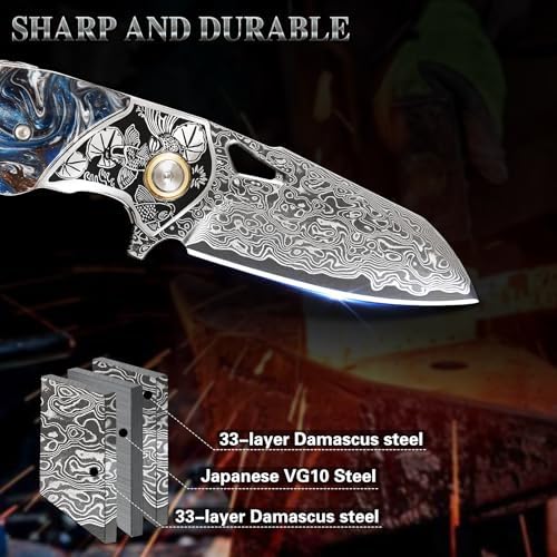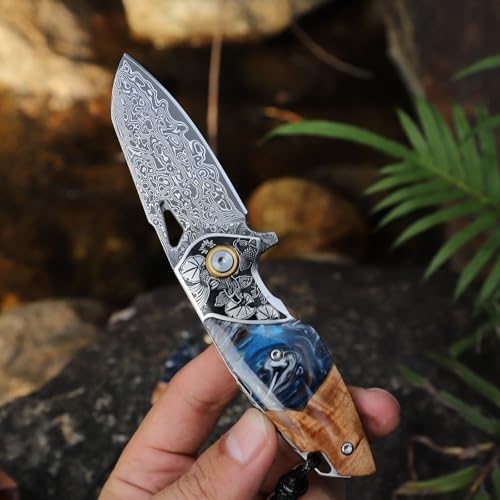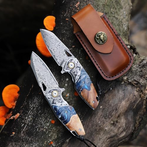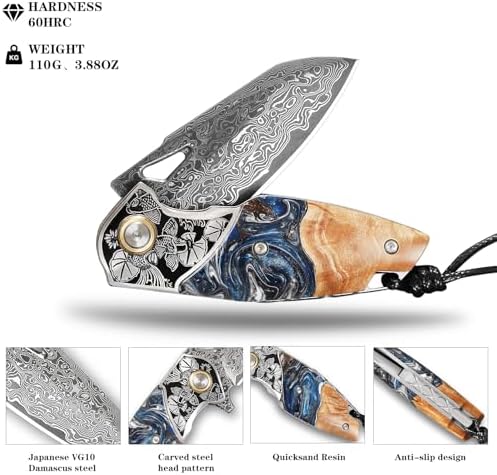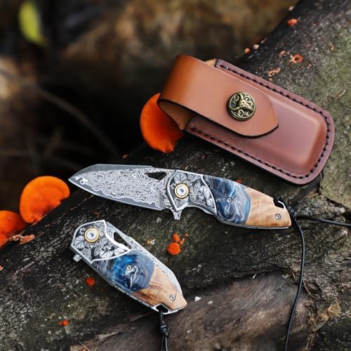 Exceptional Quality: Experience the unmatched quality of our handcrafted pocket knife. Featuring a 2.5-inch blade made from Japanese 67-layer Damascus steel, this knife combines exceptional sharpness and durability, highlighted by its stunning, unique pattern.