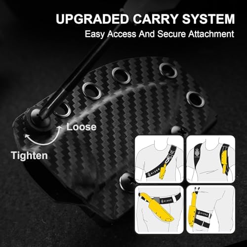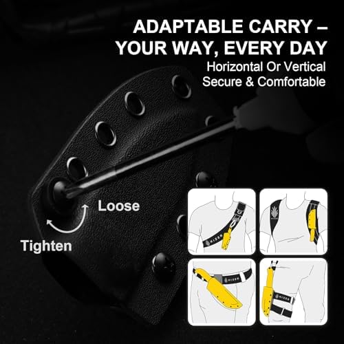 Designed for versatility, the Kydex sheath allows for adjustable tension and supports various carrying styles, including horizontal, vertical, or neck carry using the provided paracord. Whether for everyday use or outdoor adventures, it guarantees a secure and comfortable fit to suit your preferences.