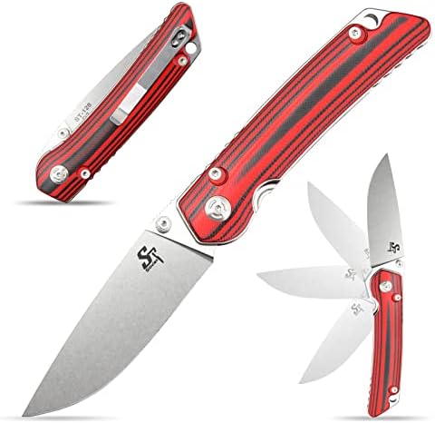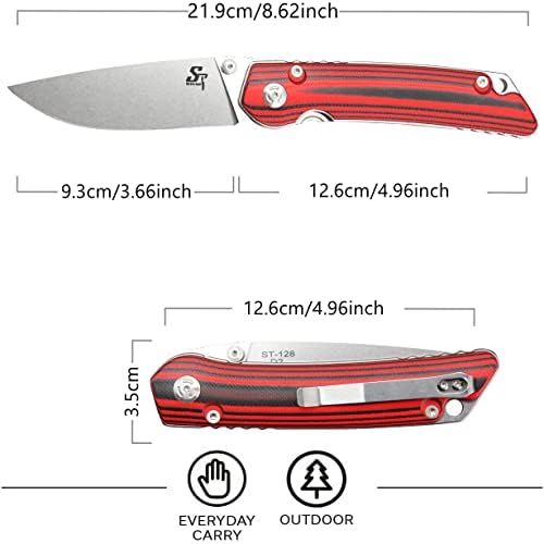 Sitivien ST128 Folding Knife – Durable D2 Blade & G10 Handle – Compact EDC Tool for Outdoor Hiking & Camping – Red – Saf